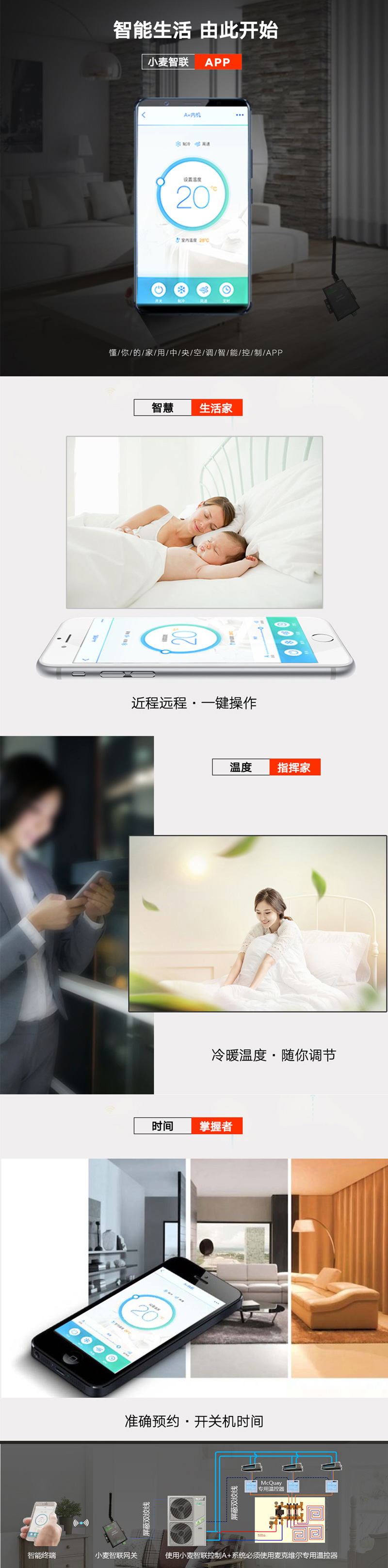 產品解說:小麥智聯APP可以匹配A+變頻中央空調和麥克維爾家用多聯機,無論何時何地都能夠方便快捷地遠程監控空調設備,使手機的控制能與現代的物聯網結合起來。